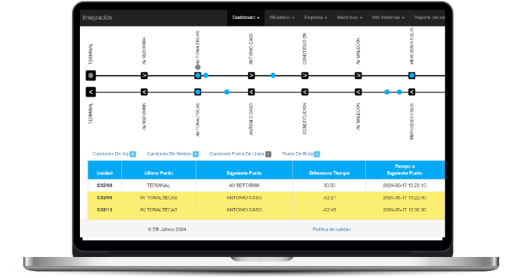 Nos dedicamos a ofrecerte una herramienta integral que te permita monitorear y mejorar continuamente la calidad y eficiencia de tus operaciones de transporte público. Con Electronic Business, tu compromiso con la excelencia está respaldado por un acceso fácil y completo a la información que necesitas.
